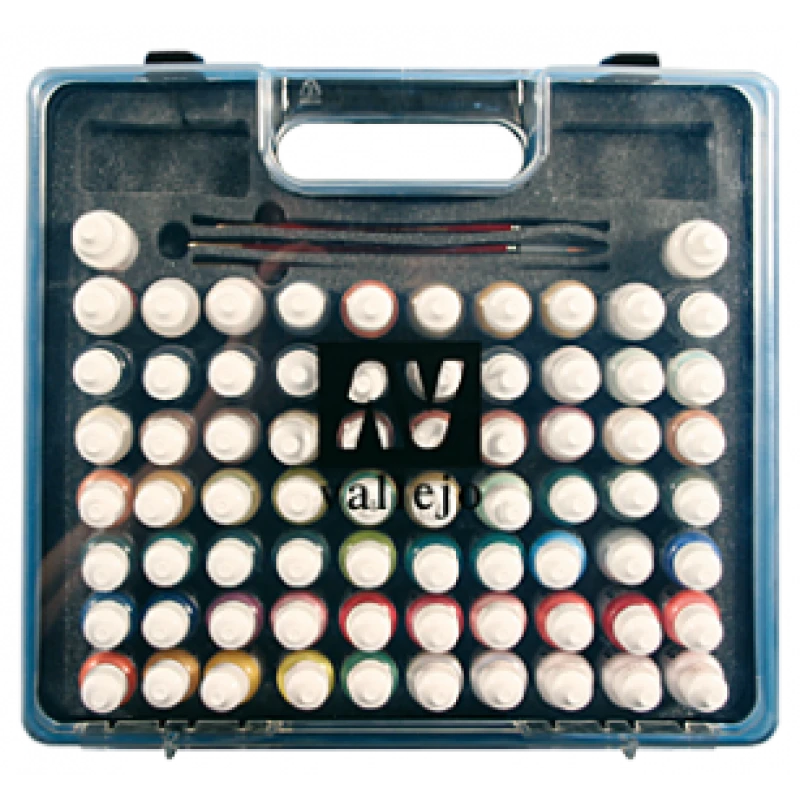 Vallejo Airbrush Colors & Opbergkoffer, incl. 72 potjes verf, 3 penselen
