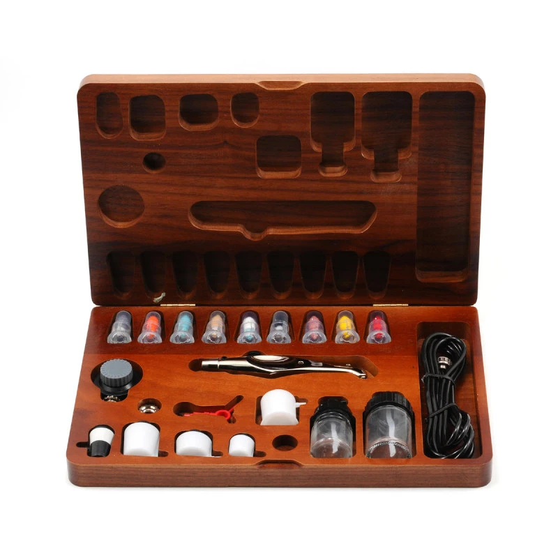 Aztek Metalen Airbrush Set -A7778 kompleet met diverse naalden en met houten opberg box