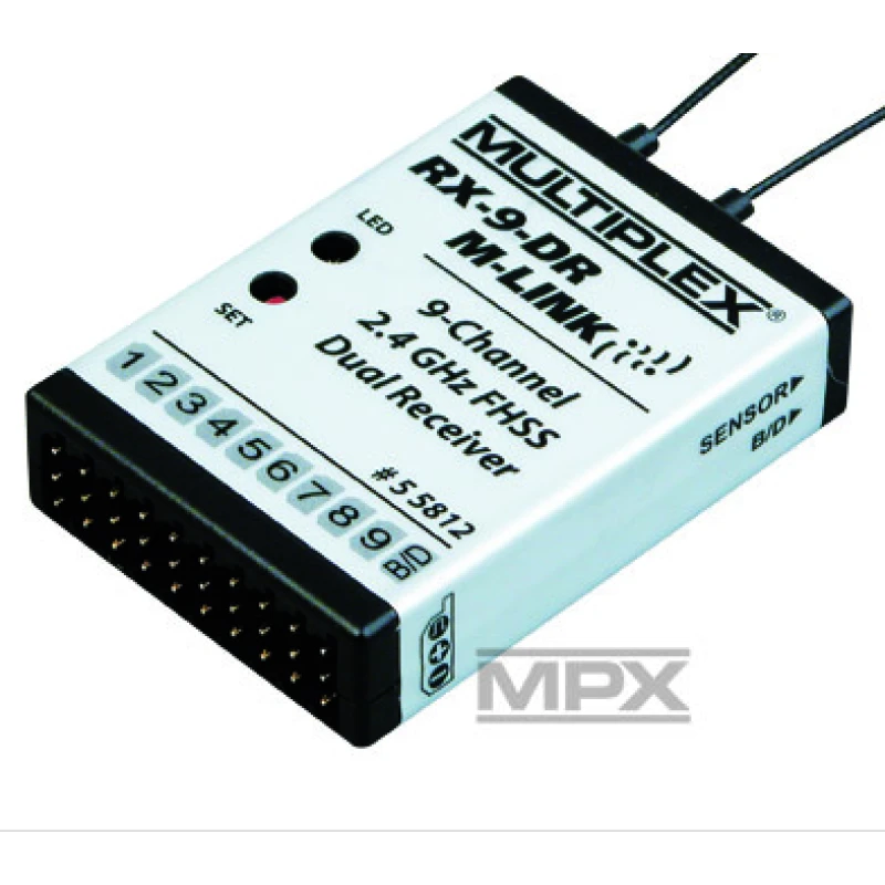 RX-9-DR M Link 9 kanaals ontvanger van Multiplex in 2,4 Ghz, ontvanger is geschikt voor telematrie